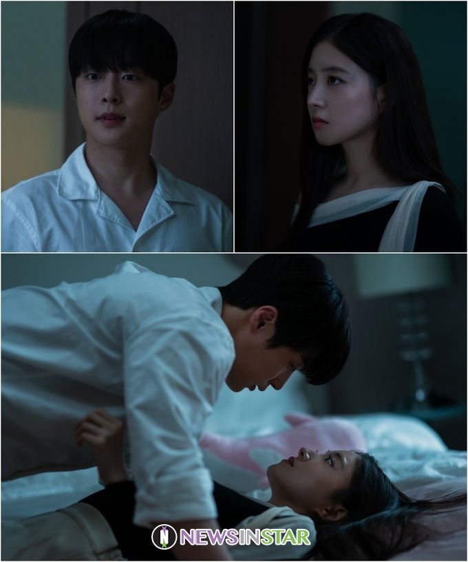 이와 관련 15일 (오늘) 방송될 7회에서는 이세영과 배인혁이 야릇한 분위기 속에서 보내는 ‘찌릿찌릿한 눈빛 교환’ 장면이 펼쳐져 시선을 강탈한다. 극 중 박연우와 강태하가 정전된 방에 함께 있는 장면. 어두운 상황 속에서 박연우와 강태하는 옥신각신하며 대화를 이어나가더니 이내 뜻하지 않은 사고로 인해 침대 위로 쓰러진다. 두 사람 사이가 숨이 닿을 듯 가까운 가운데 강태하가 박연우를 지긋이 내려다보며 더욱 거리를 좁혀오자, 박연우는 바로 굳어버리면서 떨리는 감정을 그대로 내비친다. 과연 박연우와 강태하가 한 방에 있게 된 사연은 무엇일지, 두 사람은 서로를 향한 마음을 인지하고 정식 첫 스킨십을 이뤄낼 수 있을지 귀추가 주목된다.