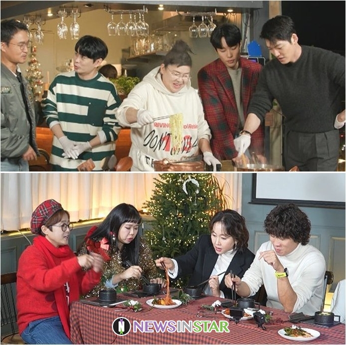 이때 류준열이 구석에서 라면을 먹는 장면이 포착돼 호기심을 더한다. 그는 맛 표현에 부담감을 잔뜩 안고 어쩔 줄 몰라하며 예능 병아리로서 수난을 제대로 겪는데. 이에 반해, 김태리는 특유의 밝은 텐션으로 맛깔 나는 먹방을 펼쳐 송은이와 홍현희의 눈길을 사로잡는다. 뿐만 아니라 김우빈과 염정아, 조우진, 진선규까지 이영자 표 스페셜 라면을 먹고 저마다 리액션이 폭발했다고 해 그 모습이 궁금해진다.