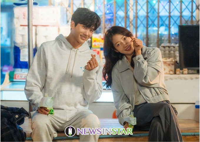 그런 가운데 공개된 사진 속, 박형식과 박신혜의 촬영장 뒷모습이 이목을 집중시킨다. 먼저 본 촬영에 앞서 오현종 감독과 함께 대사와 동작을 맞추는 박형식의 리허설 장면이 포착됐다. 이어 본 촬영이 시작되자 곧바로 캐릭터에 완벽 몰입한 박신혜의 모습도 시선을 사로잡는다. 리허설도 실전도 100% 이상의 집중력과 에너지를 쏟아내는 열연 모먼트가 감탄을 불러일으킨다. 또 다른 사진에서 박형식, 박신혜는 카메라를 향해 손가락 하트를 만들어 보이며 미소를 짓고 있다. 이토록 다정하고 사랑스러운 케미스트리는 두 사람의 재회가 기대되는 이유다.