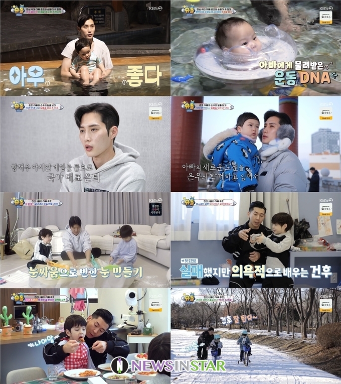 지난 23일 방송된 ‘슈돌’ 511회는 ‘반짝반짝 빛나는 우리 편’으로 소유진과 ‘골든걸스’로 5세대 걸그룹으로 새로운 도전을 시작한 인순이가 스페셜 내레이터로 참여했다. 이날 새해를 맞이해 '업그레이드'를 목표로 삼은 김준호-은우-정우 삼부자는 속초에서 온천부터 일출까지 즐기며 뜻깊은 여행을 보냈고, 건후와 진우 형제는 ‘청소광’ 브라이언을 만나 쉴 틈 없는 장꾸미와 의젓한 면모를 동시에 보여주며 보는 이들에게 흐뭇함을 자아냈다.