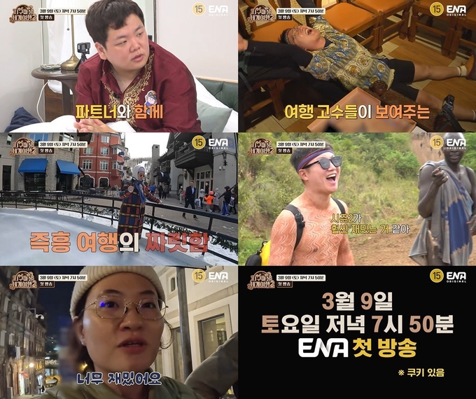 한편 강화된 즉흥성, 더욱 커진 스케일, 새로운 게임 장치, 여행 파트너 룰 등으로 업그레이드된 재미를 선사할 ‘지구마불 세계여행2’는 오는 3월 9일 토요일 저녁 7시 50분 ENA에서 첫 방송된다.