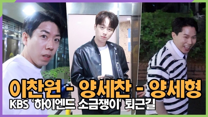 [뉴스인스타 양철수기자] 5월 7일(화) 오후, 서울시 영등포구 여의도 KBS 신관 TV공개홀에서 진행된 KBS 새 예능 '하이엔드 소금쟁이' 녹화를 마치고 이찬원, 양세형, 양세찬이 방송국을 나서고 있다.