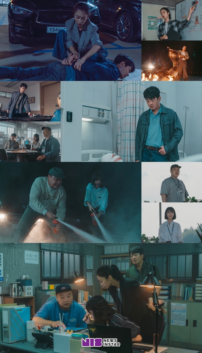 마지막으로 우동기와 어현경은 ‘황금 막내’다운 패기와 귀여움으로 활력을 불어넣었다. 우동기는 사이드미러만 보고도 차종과 출시 연도까지 정확히 맞힐 정도로 자동차라면 모르는 게 없는 전문가. 덩치와 안 어울리게 액션은 안 되지만민소희와 어현경이 주먹과 발차기로 때려 눕힌 대규모 중고차 사기단에게 공손하게 ‘일회용 수갑’ 차는 법을 설명하는 등 나름의 방식으로 일조했다. 그와는 달리 어현경은 범죄자들을 향해 거리낌 없이 돌진해 주특기인 발차기로 현장을 압도했다. 민소희와의 액션 조합이 화끈한 볼거리를 선사한 대목. 그 가운데, 맛있는 것만 보면 혀 짧은 막내 애교로 반전 매력을 보여주며 신개념 걸크러시 탄생을 알렸다.