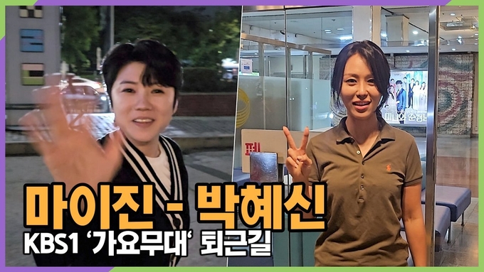 [뉴스인스타 양철수기자] 5월 27일(월) 오후, 서울시 영등포구 여의도동 KBS 별관에서 진행된 KBS 1TV '가요무대' 녹화를 마치고 현역가왕 마이진, 박혜신이 방송국을 나서며 팬들과 팬미팅을 진행하고 있다.