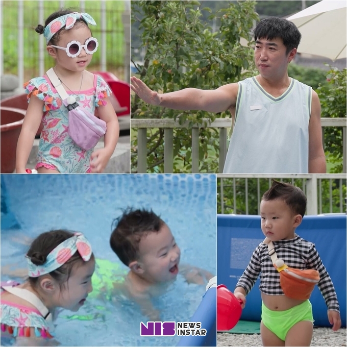 장동민의 딸 지우와 아들 시우는 매력이 터지는 수영복 패션으로 시선을 사로잡는다. 지우는 화려한 그래픽의 원피스 수영복에 러블리한 헤어 밴드와 꽃 모양 선글라스까지 매치해 DM 워터파크를 강타하는 ‘꾸꾸 수영패션’의 진수를 뽐낸다. 시우는 형광 컬러의 수영팬츠와 크로스백으로 힙한 매력을 뿜어내 귀여움을 폭발시킨다.