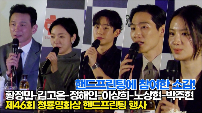 [뉴스인스타 양철수기자] 10월 29일(수) 오전, 서울시 영등포구 여의도 CGV 여의도에서 제46회 청룡영화상 핸드프린팅 행사가 열려 제45회 청룡영화상 수상자 배우 황정민(남우주연상), 김고은(여우주연상), 정해인(남우조연상), 이상희(여우조연상), 노상현(신인남우상), 박주현(신인여우상)가 참석해 공통 인터뷰를 진행하고 있다.