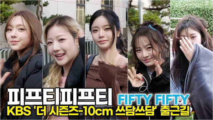 [뉴스인스타 양철수기자] 12월 2일(화) 오후, 서울시 영등포구 여의도 KBS 신관 TV공개홀에서 진행되는 KBS '더 시즌즈 - 10cm의 쓰담쓰담' 출연을 위해 그룹 피프티피프티(FIFTY FIFTY)의 키나, 문샤넬, 예원, 하나, 아테나가 방송국에 도착해 포토타임을 갖고 있다.