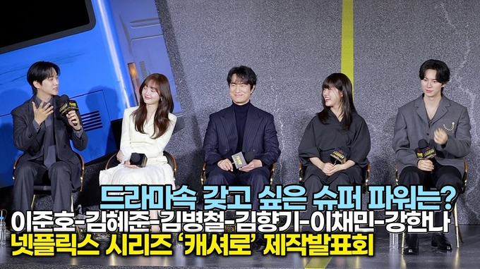 [뉴스인스타 양철수기자] 12월 22일(월) 오전, 서울시 강남구 삼성동 웨스틴 서울 파르나스에서 넷플릭스 시리즈 ‘캐셔로’ 제작발표회가 열려 배우 이준호, 김혜준, 김병철, 김향기, 이채민, 강한나가 참석해 공통 인터뷰를 진행하고 있다.