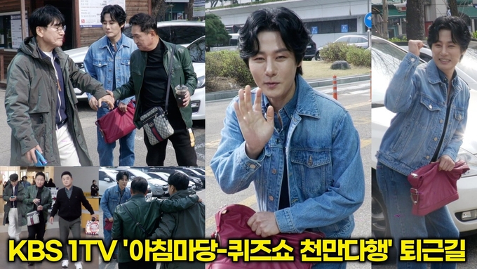 [뉴스인스타 양철수기자] 4월 3일(금) 오전, 서울시 영등포구 여의도 KBS에서 진행된 KBS 1TV ‘아침마당 - 퀴즈쇼 천만다행' 생방송 출연을 마치고 가수 조항조, 김범룡, 진시몬, 강문경이 방송국을 나서며 포즈를 취하고 있다.