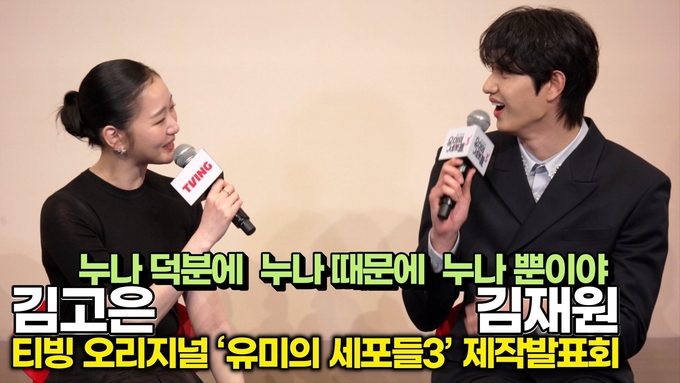 [뉴스인스타 양철수기자] 4월 7일(화) 오후, 서울시 구로구 신도림동 더링크서울, 트리뷰트포트폴리오 호텔에서 진행된 티빙 오리지널 ‘유미의 세포들3’ 제작발표회가 열려 배우 김고은, 김재원이 참석해 공통 인터뷰를 진행하고 있다.