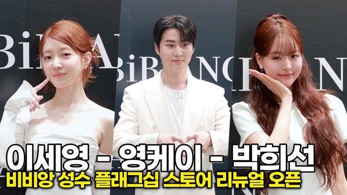 [뉴스인스타 양철수기자] 4월 10일(금) 오후, 서울시 성동구 성수동에서 ‘비비앙(BIBIANG)’ 성수 플래그십 스토어 리뉴얼 오픈 기념행사가 열려 배우 이세영, 밴드 데이식스(Day6) 영케이, 인플루언서 박희선이 참석해 포토타임을 갖고 있다.