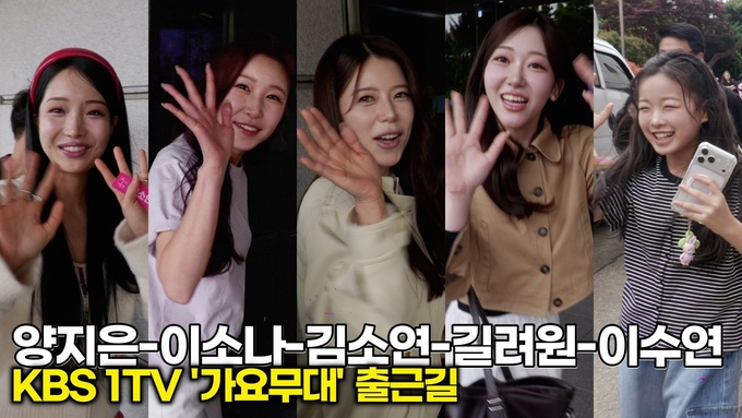 [뉴스인스타 양철수기자] 4월 27일(월) 오후, 서울시 영등포구 여의도동 KBS 별관에서 진행되는 KBS 1TV '가요무대' 녹화를 위해 미스트롯 진 양지은, 이소나, 가수 김소연, 길려원, 이수연이 방송국에 도착하고 있다.
