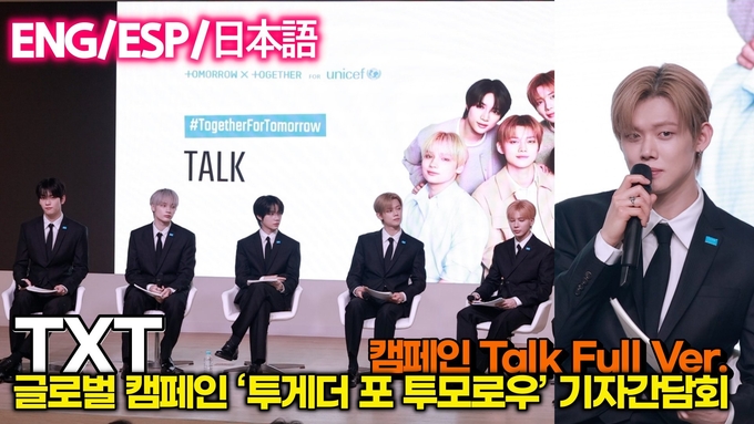 한편 전 세계 아동 청소년의 마음 건강을 위한 글로벌 캠페인 ‘투게더 포 투모로우’는 지난해 10월 유니세프 한국위원회, 유니세프 본부, 빅히트 뮤직이 뉴욕에서 체결한 글로벌 협약의 일환으로 아동·청소년이 마음을 자유롭게 표현하고 도움을 요청할 수 있는 사회 문화 조성을 목표로 투모로우바이투게더와 빅히트 뮤직은 캠페인에 약 140만 달러를 기부한다.