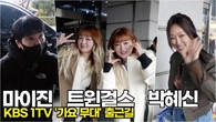 [스타 영상] 트윈걸스-박혜신-마이진, 빗속 뚫고 도착한 명품 보컬 (KBS '가요무대' 출근…