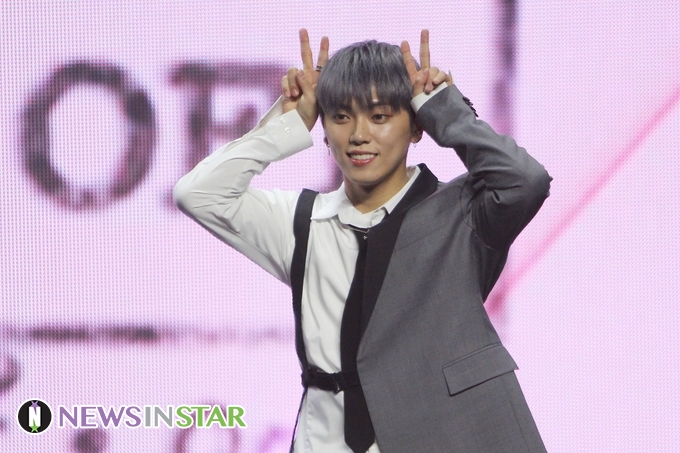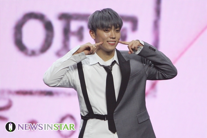 7일 오후, 서울시 송파구 올림픽공원 K-아트홀에서 온앤오프(ONF) 3집 미니앨범 발매기념 쇼케이스가 열려 온앤오프 MK가 포토타임을 갖고 있다.