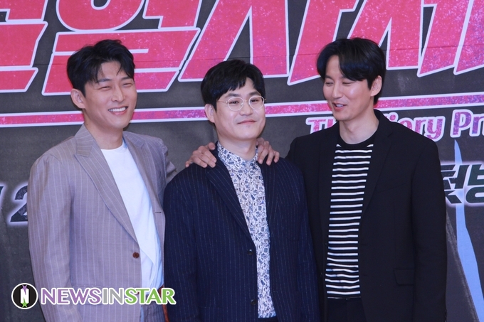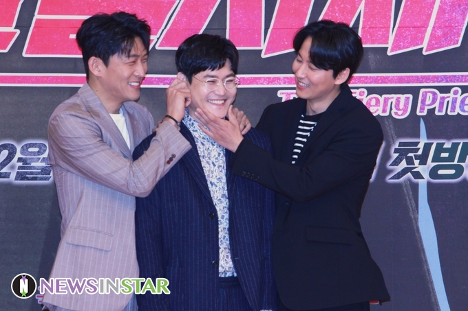 15일 오후 서울시 양천구 목동 SBS 에서 열린 SBS의 첫 금토드라마 ‘열혈사제’의 제작발표회 열려 배우 고준, 김성균, 김남길이 참석해 포즈를 취하고 있다.