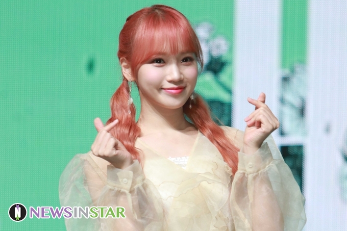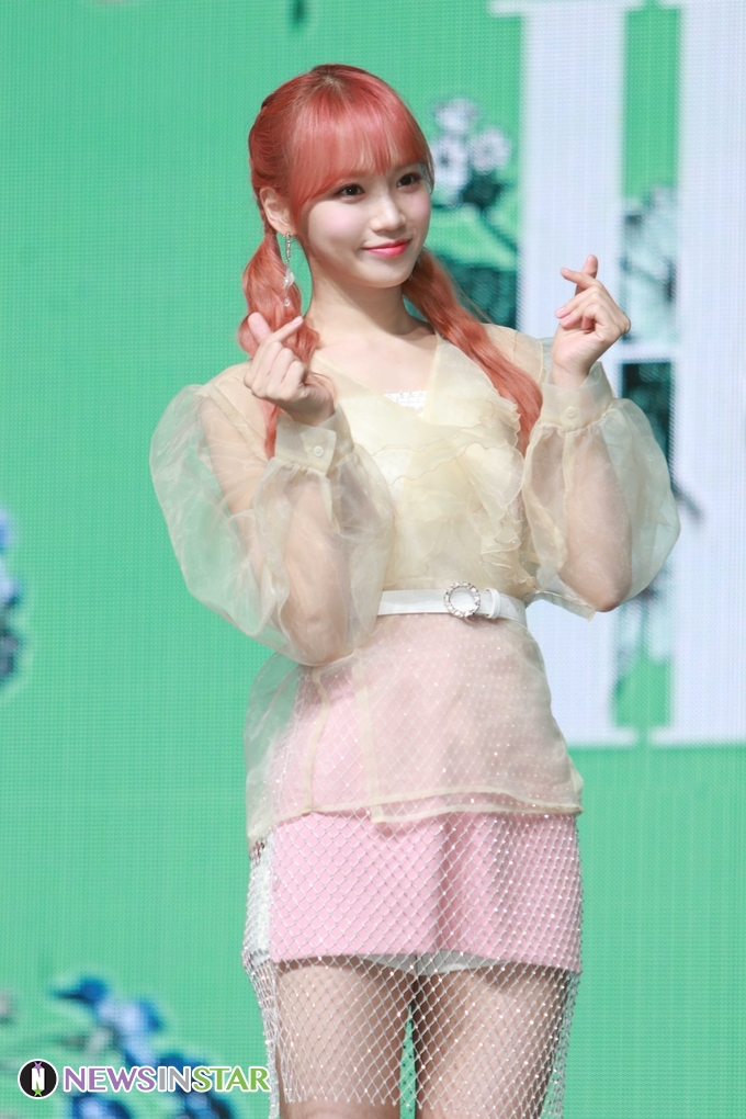 1일 오후 서울시 용산구 한남동 블루스퀘어에서 아이즈원(IZ*ONE)의 두번째 미니앨범 'HEART*IZ' 발매 기념 쇼케이스가 열려 아이즈원 김채원이 포토타임에 포즈를 취하고 있다.