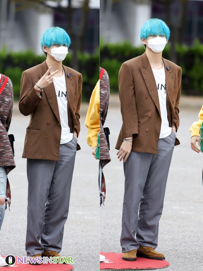 [포토인스타] 빨간머리에 이어 파란머리도 찰떡 같이 흡수하는 뷔! (뮤직뱅크 출근길)