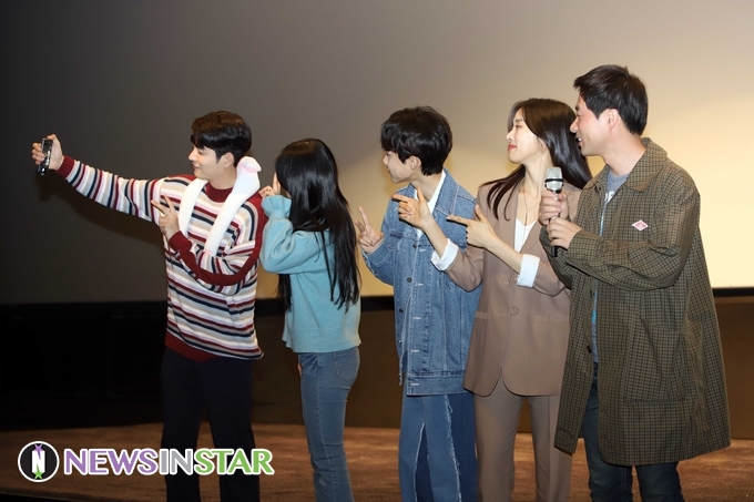 21일 오후 서울시 송파구 신청동 롯데시네마 월드타워에서 영화 '다시 봄' 무대인사 행사가 열려 배우 이청아, 박지빈, 홍종현과 정용주 감독이 참석해 관객과 소통을 하고 있다.
