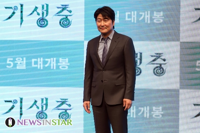 22일 오전 서울시 중구 소공동 웨스틴 조선호텔에서 영화 '기생충' 제작발표회가 열려 배우 송강호, 이선균, 조여정, 최우식, 박소담, 장혜진과 봉준호 감독이 참석했다. 이날 송강호가 포토타임을 갖고 있다.