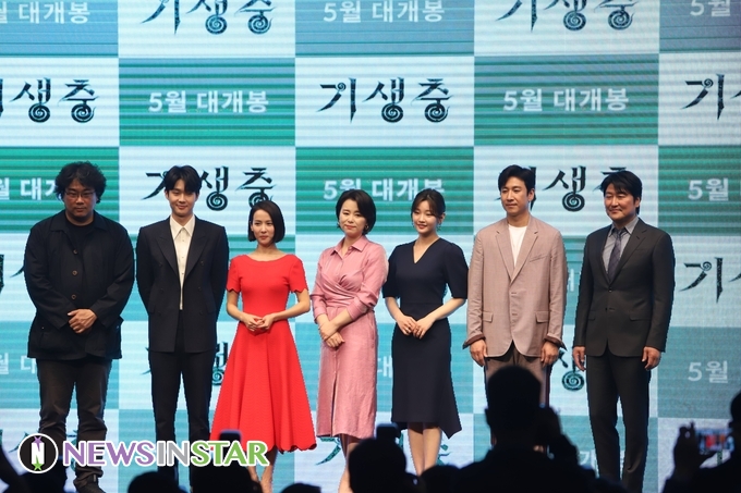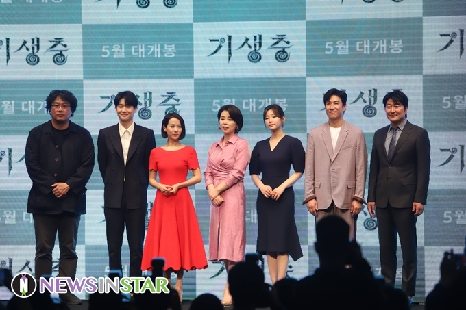 22일 오전 서울시 중구 소공동 웨스틴 조선호텔에서 영화 '기생충' 제작발표회가 열려 배우 송강호, 이선균, 조여정, 최우식, 박소담, 장혜진과 봉준호 감독이 참석해 포토타임을 갖고 있다.