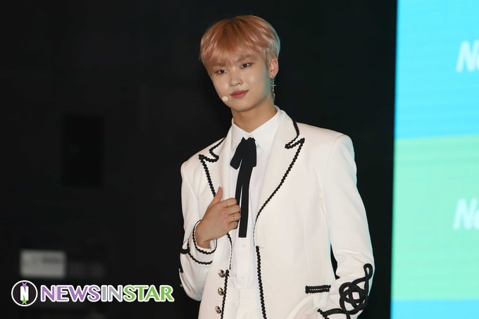 23일 오후 서울시 중구 을지로 롯데피트인 동대문점에서 그룹 '뉴키드(NEWKIDD)' 데뷔 앨범 쇼케이스가 열려 윤민이 참석해 포즈를 취하고 있다.