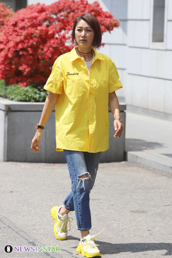 이날 방송인 변정수가 출근길에 포즈를 취하고 있다.