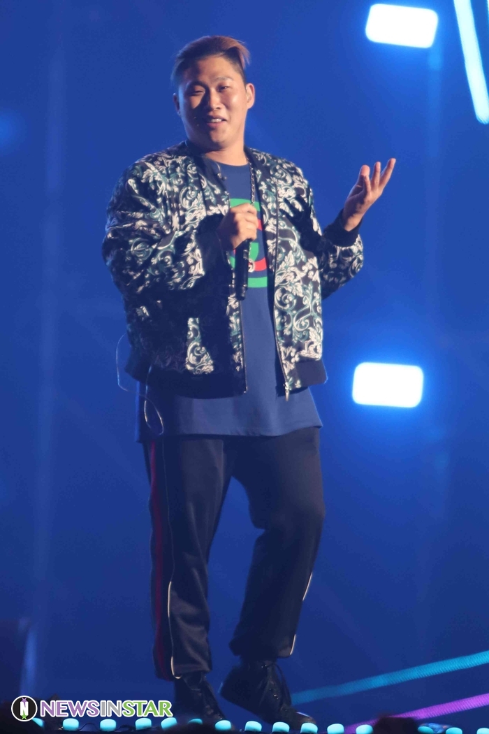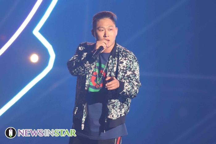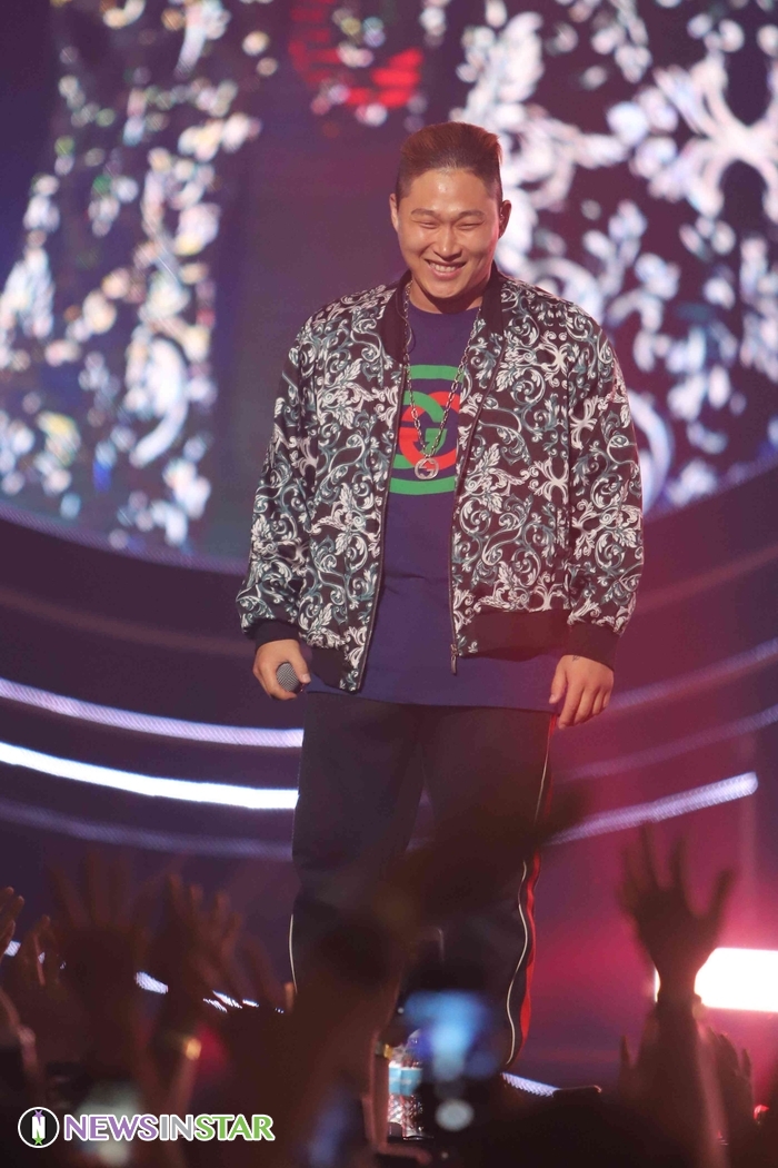 1일 오후 서울시 송파구 방이동 올림픽공원 핸드볼경기장에서 국내 최고 힙합 뮤지션들의 라이브콘서트 '지니뮤직 페스티벌 2019'이 열려 뮤지션 스윙스가 참석해 열정적인 무대를 선보이고 있다.