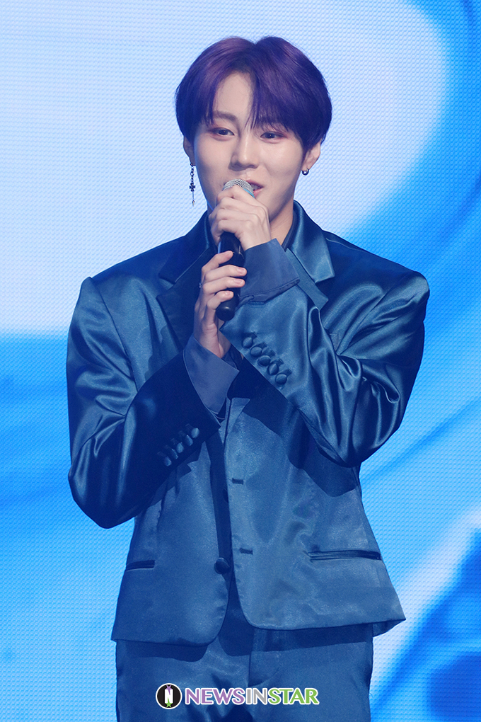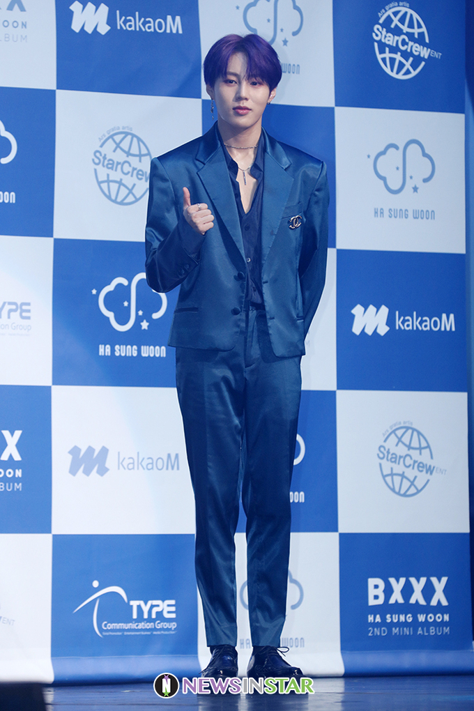워너원 출신 가수 하성운이 8일 오후 서울 광진구 예스24 라이브홀에서 열린 두 번째 미니앨범 'BXXX' 발매 쇼케이스에서 포즈를 취하고 있다.