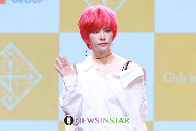 23일 오후 서울시 광진구 광장동 예스24 라이브홀에서 걸그룹 공원소녀(GWSN)의 세번째 미니앨범 '밤의 공원(THE PARK IN THE NIGHT) part three' 쇼케이스가 열려 공원소녀 미야가 포토타임을 갖고 있다.