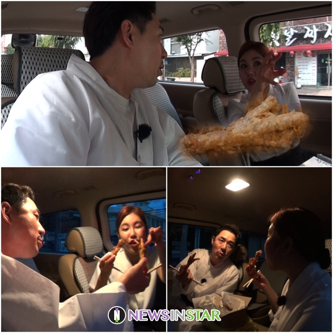 이어 송가인과 붐은 좁디좁은 차 안에 치킨과 닭발 튀김을 가득 펼쳐 놓고 본격 폭풍 먹방을 펼쳤다. 송가인은 그 시절 그 맛을 고스란히 간직한 데에 감탄하며 “아따 그 때 그 맛이여~”라고 구수한 사투리를 내뱉었고, “내 취향은 이것”이라며 큼지막한 닭발을 꺼내 들기도 했다. ‘서울오빠’ 붐은 송가인의 솔직하고 털털한 모습에 연신 먹거리를 챙겨주며 웃음을 터뜨렸다.