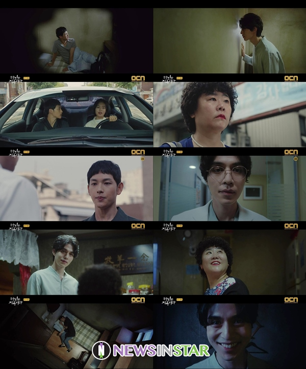 지난 8일 방송된 OCN 드라마틱 시네마 ‘타인은 지옥이다’(극본 정이도, 연출 이창희, 제작 영화사 우상, 공동제작 스튜디오N, 총10부작) 제4회 ‘정신착란’에서 섬뜩했던 서문조(이동욱)와의 맥주 한잔을 마치고 잠자리에 든 윤종우(임시완)의 꿈속은 어지러웠다. 야영지에서 게걸스럽게 무언가를 먹던 군대시절 선임이 입 주위를 온통 피로 물들인 기괴한 모습으로 “자기도 먹을래?”라고 권했고, 그는 곧 서문조로 변해 “사람 고긴데”라고 말한 것. 꿈이었지만 너무나도 생생한 악몽에 종우는 식은땀을 흘리며 깨어났고, 고시원 낡은 벽의 작은 구멍 너머로 서문조가 이를 지켜보고 있어 소름을 유발했다.