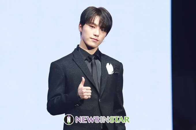 16일 오후 서울시 성북구 안암동 고려대학교 화정체육관에서 그룹 세븐틴(SEVENTEEN) 정규 3집앨범 'An Ode(언 오드)' 발매 기념 쇼케이스가 열려 디노가 포토타임을 갖고 있다.