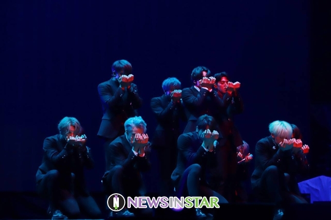 16일 오후 서울시 성북구 안암동 고려대학교 화정체육관에서 그룹 세븐틴(SEVENTEEN) 정규 3집앨범 'An Ode(언 오드)' 발매 기념 쇼케이스가 열려 타이틀곡 '독:Fear' 첫 무대를 선보이고 있다.