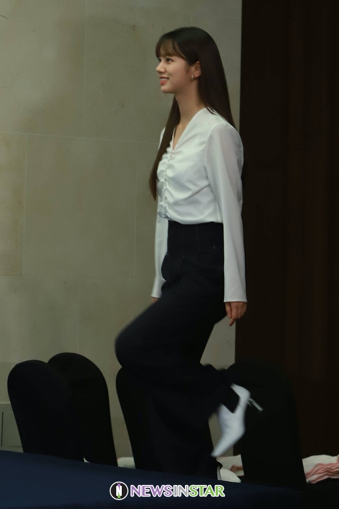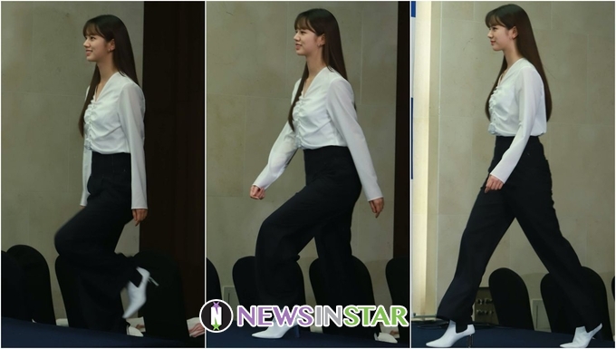 14일 오후 서울시 마포구 상암동 스탠포드호텔에서 tvN 수목드라마 '청일전자 미쓰리'의 기자 간담회가 열려 가수 겸 배우 해리가 포토월에 입장하고 있다.
