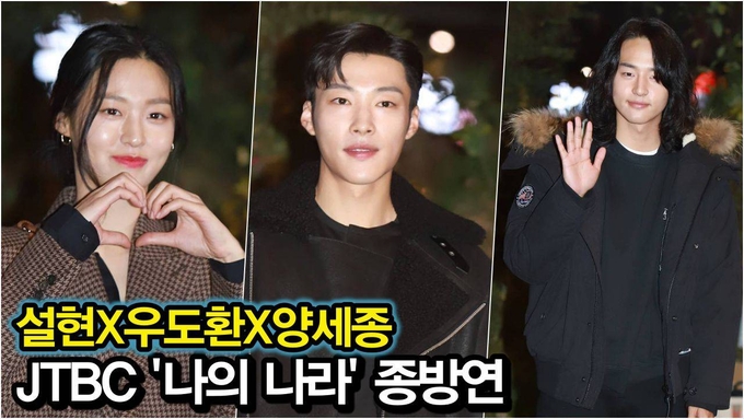 23일 오후 서울시 영등포구 여의도동 목우촌가든에서 JTBC 금토드라마 '나의 나라' 종방연 행사가 열려 배우 설현, 우도환, 양세종이 참석하고 있다.