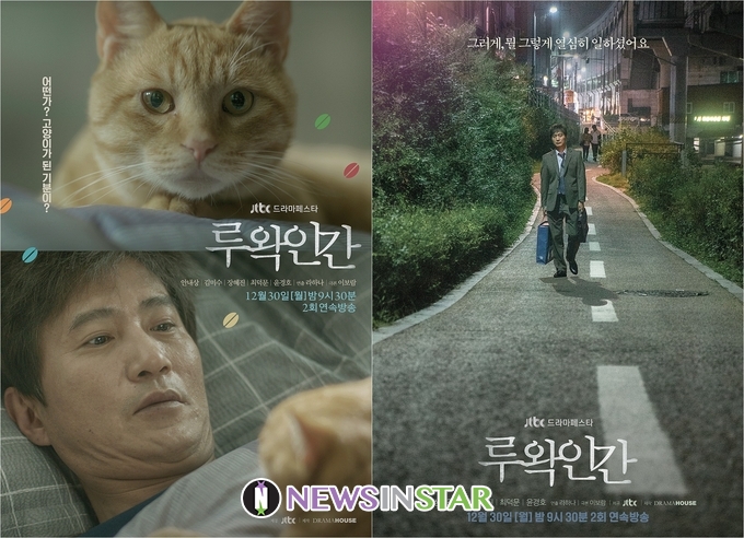 오는 12월 30일 방송되는 JTBC 드라마 페스타 ‘루왁인간’(연출 라하나, 극본 이보람, 제작 드라마하우스) 측이 27일, 위기의 세일즈맨 정차식(안내상 분)에게 찾아온 특별한 순간부터 평범한 일상까지 담은 메인 포스터 2종을 공개하며 기대감을 높였다.