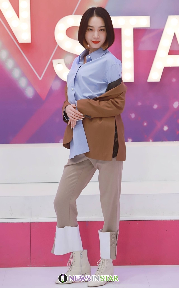 12월 3일 오후 서울시 마포구 상암동 에스플렉스 센터 1층 tbs 오픈스튜디오에서 팩트인스타 ‘희나피아’ 편 공개 녹화가 진행돼 민경이 녹화 전 포토타임을 진행하고 있다.