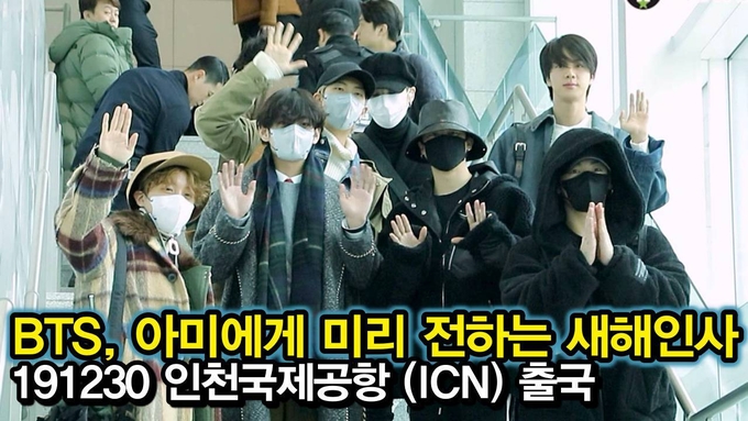 12월 30일 오전 인천시 중구 운서동 인천국제공항에 방탄소년단(BTS) RM 슈가, 진, 제이홉, 지민, 뷔, 정국이 31일 미국 뉴욕 타임스퀘어에서 열리는 美 ABC 방송국의 새해맞이 라이브 쇼 '딕 클라크스 뉴 이어스 로킹 이브 ’20 위드 라이언 시크레스트(Dick Clark's New Year's Rockin' Eve ’20 with Ryan Seacrest)’ 출연을 위해 미국으로 출국하고 있다.