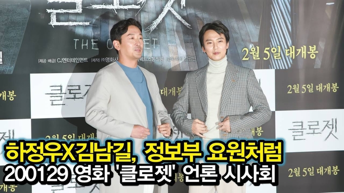 29일 오후 서울시 용산구 CGV 용산아이파크몰에서 영화 '클로젯' 언론시사회가 열려 배우 하정우 김남길이 참석해 포토타임을 갖고 있다.