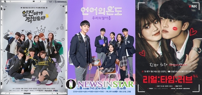 마지막으로 ‘리얼:타임:러브2’가 13일(금) 최종회를 남겨두고 있다. ‘리얼:타임:러브2’(제작 와이낫미디어)는 청춘 예고생들의 리얼 러브 성장통. 주연 홍연(박시영 분), 문예찬(최현욱 분)이 중심이 되어 사랑, 우정 사이를 아슬아슬하게 넘나드는 10대들의 리얼한 일상을 솔직하게 그리고 있다. 특히 오늘(13일) 최종회를 남겨둔 가운데 홍연, 문예찬이 계약연애를 끝내고 달달한 찐연애를 시작할 수 있을지 팬들의 궁금증을 높이고 있다. 이에 ‘리얼:타임:러브2’의 최종회는 오늘(13일) 저녁 8시 브이라이브(V앱)와 네이버TV에서 타 플랫폼 통틀어 선 공개된다.