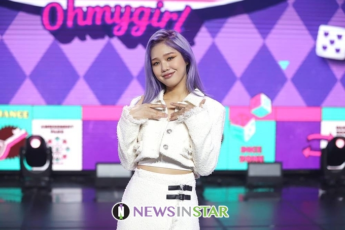 27일 오후 오마이걸(Oh My Girl) 아린, 승희, 지호, 효정, 비니, 유아, 미미의 미니 7집 앨범 ‘N(논스톱)’ 발매 기념 온라인 쇼케이스가 열려 오마이걸 미미가 포즈를 취하고 있다.