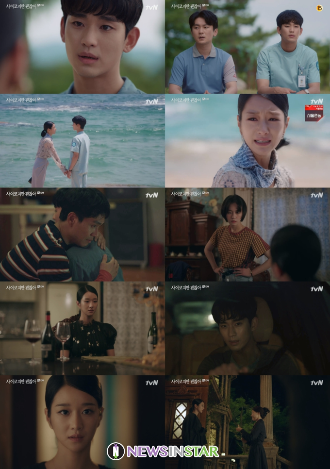 이처럼 ‘사이코지만 괜찮아’ 10회는 서로를 향한 마음이 사랑임에도 더는 다가가지 못하는 문강태와 고문영의 애틋한 로맨스로 시청자들의 마음을 아리게 하는 한편, 서서히 고개를 들기 시작한 고문영 가족의 잔혹사로 미스터리함까지 자아냈다. 과연 고문영과 병원을 탈출한 박옥란은 어떤 관계일지 문강태와 고문영은 다시 서로의 안전핀이 될 수 있을지 다음 회를 향한 기대감이 폭풍 상승 중이다.