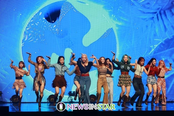 [뉴스인스타 양철수기자] 10월 19일(월) 오후 서울 용산구 한남동 블루스퀘어에서 열린 이달의 소녀(LOONA) 희진, 현진, 여진, 비비, 김립, 진솔, 최리, 이브, 츄, 고원, 올리비아 혜의 세 번재 미니앨범 ’12:00(미드나잇)’ 발매 쇼케이스가 열려 타이틀곡 'Why Not?' 무대를 선보이고 있다.
