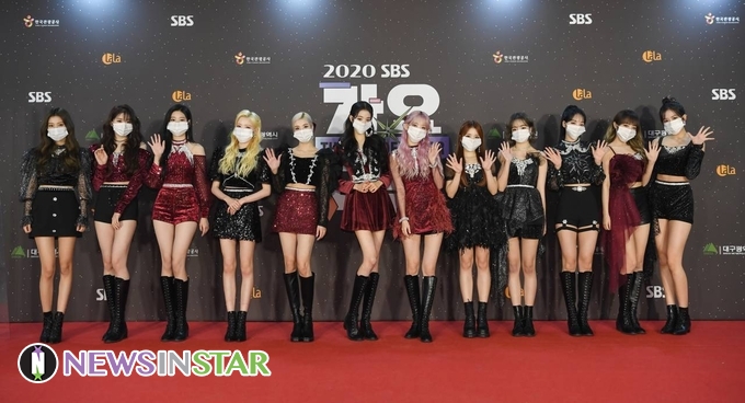 12월 25일 오후 대구광역시에서 진행되는 2020 SBS 가요대전 in DAEGU' 레드카펫 행사가 열려 아이즈원(IZ*ONE) 권은비, 미야와키 사쿠라, 강혜원, 최예나, 이채연, 김채원, 김민주, 야부키 나코, 혼다 히토미, 조유리, 안유진, 장원영이 포토타임을 갖고 있다.