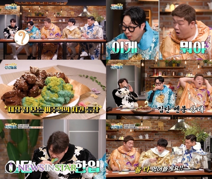 요리의 정체는, 초콜릿으로 범벅한 ‘초코 치킨’. 심지어 한 가지 초콜릿이 아니라 일반 초콜릿과 민트 초콜릿에 각각 버무려 낸 ‘초코 반, 민초 반’ 치킨이었던 것. 이를 본 MC들은 살면서 본 적 없는 충격적인 치킨의 비주얼에 경악을 금치 못하며 시식을 주저하는 모습까지 보였다.