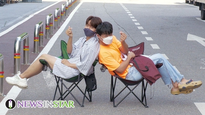 [뉴스인스타 양철수기자] 6월 21일(월) 오전, 서울시 영등포구 여의도 KBS 공개홀에서 진행되는 KBS ‘불후의 명곡’ 녹화를 위해 ‘트롯 전국체전’ 재하-신승태가 방송국에 도착하고 있다.