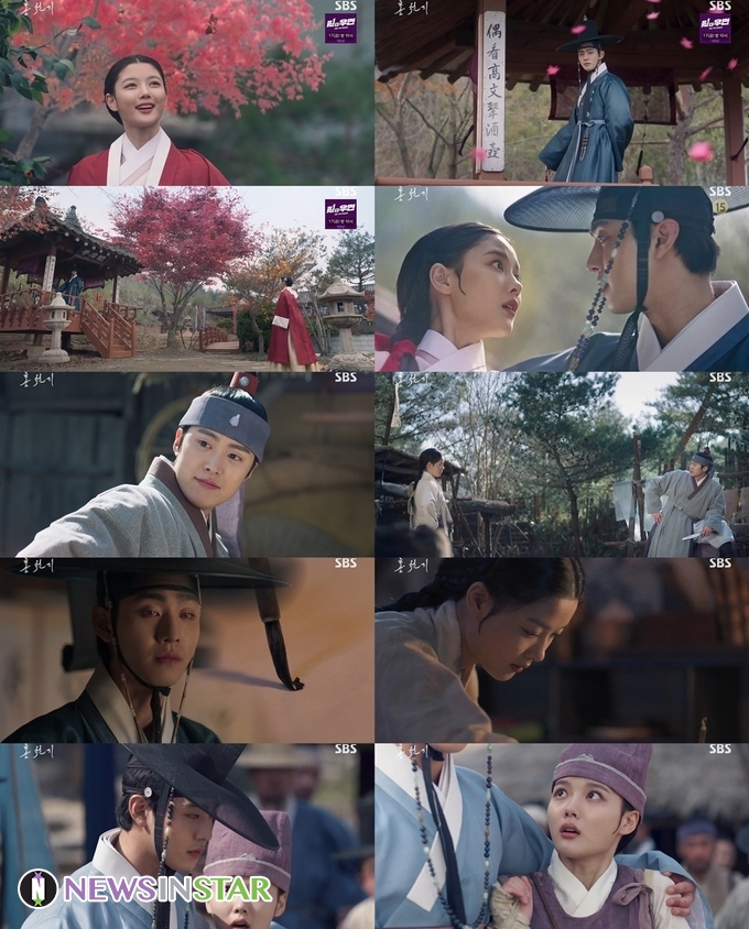 홍천기는 양명대군(공명 분)이 여는 ‘매죽헌 화회’에 참가하기 위해 참가자 명부를 들고 매죽헌으로 향했다. 그곳에는 운명처럼 하람이 있었다. 하람 역시 홍천기의 목소리를 듣고 그녀를 한번에 눈치챘다. 시간이 멈춘 듯 서로를 보는 두 사람의 재회는 바람에 흩날리는 붉은 단풍과 함께 아련함과 설렘을 선사했다.