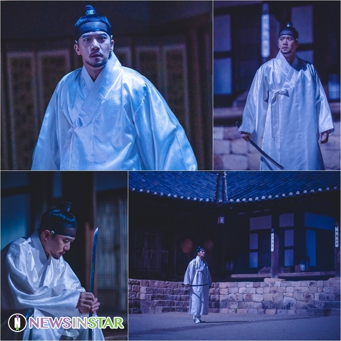 이 가운데 공개된 스틸 속 하석진은 눈 뗄 수 없는 존재감을 발산하며 ‘옷소매’ 배우 군단과의 강렬한 시너지를 예고한다. 불빛 하나 보이지 않는 야심한 밤, 새하얀 소복을 입은 하석진은 신발도 신지 않은 채 마당을 배회하는 모습. 더욱이 서슬 퍼런 장검을 손에 꼭 쥐고 칼날보다 형형한 눈빛을 빛내는 하석진의 모습이 긴장감을 자아내는 동시에 그의 정체에 궁금증이 치솟는다. 이처럼 현장 스틸만으로도 임팩트 넘치는 활약을 예고하고 있는 하석진의 연기는 ‘옷소매’ 첫 방송을 통해 확인할 수 있다.