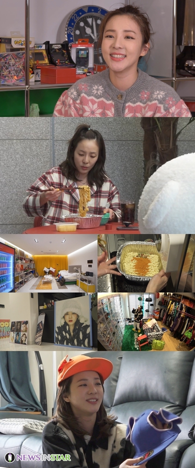 산다라박은 거실 벽 한쪽을 가득 채운 컬렉션을 비롯해 동공 확장을 부르는 드레스룸까지 그야말로 ‘감각 맛집’ 다운 인테리어를 자랑한다. 여기에 냉장고, 부엌, 심지어 복도까지 ‘기승전 산다라박’ 사진으로 장식, 전현무의 자기애 충만 하우스를 떠오르게 하는 인테리어로 폭소를 유발한다.